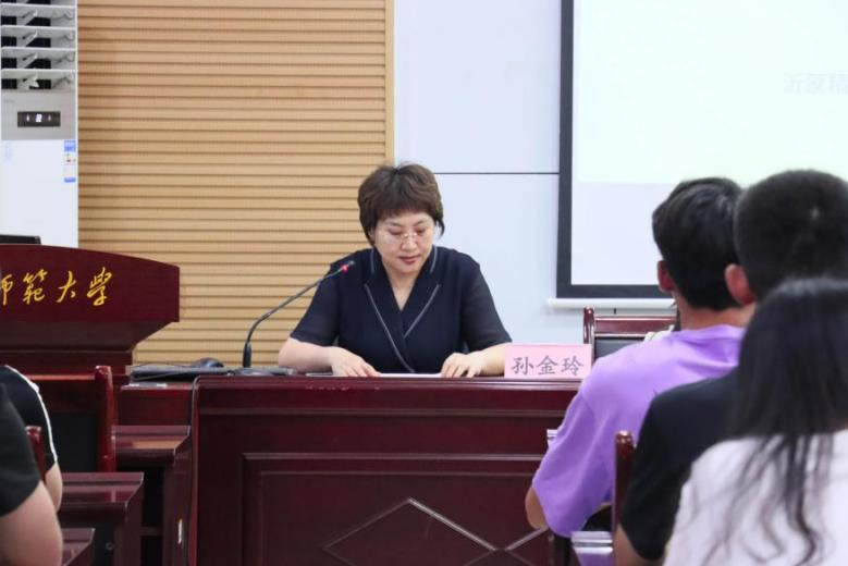 图为学院党委副书记孙金玲对培训班学员进行培训