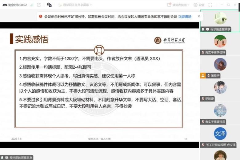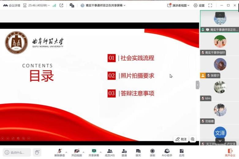 于7月6日上午9:30面向各社会实践队线上举办了暑假社会实践培训大会。