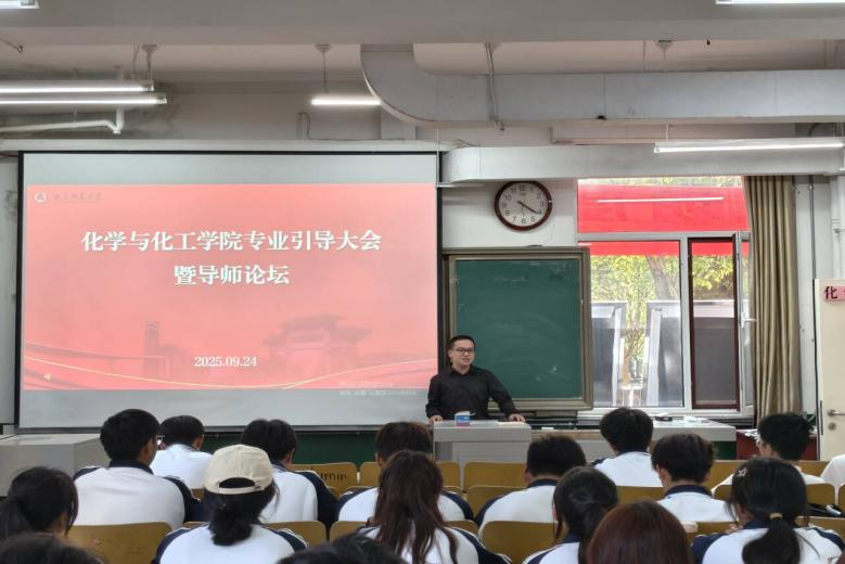 紧扣不同专业培养特色,分场次召开 2025 级新生学业引导大会。学院副院长刘鹏、团委书记王亚平,材料化学教研室白啸老师、化工教研室王凤祥老师及2025级辅导员曾川参加会议,全体 2025 级本科生齐聚会场,共同开启这场兼具专业性与指导性的学业 “启蒙第一课”。