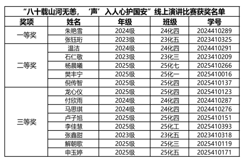 此次比赛以多元鲜活的线上表达为桥梁,将深厚的家国情怀、护国担当转化为直抵人心的话语力量,让爱国精神真正“浸润”每一位学生的内心,让护国意识从情感升华为可感知、可践行的实际行动。