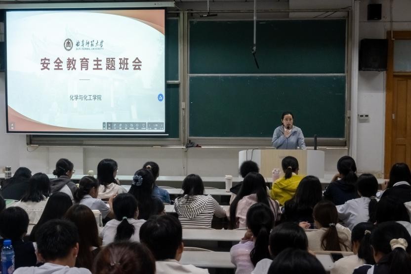 于综合楼106教室组织召开2025级本科生国庆假期安全教育主题班会。辅导员王亚平担任主讲,全体新生参会。