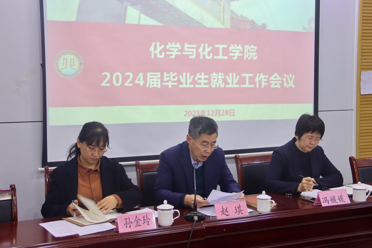 于化学楼226召开2024届毕业生就业工作会议。学院党委书记赵琪、院长冯媛媛、党委副书记孙金玲,全体辅导员、就业指导导师参加会议,会议由党委副书记孙金玲主持。