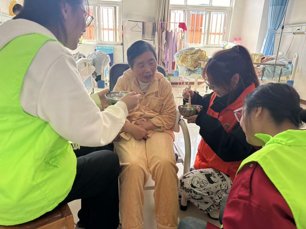 活动期间,志愿者们为老人们送去了慰问礼物,在各小组负责人的组织下,志愿者们有序进入老人们的房间主动地开展志愿者服务。志愿者们分工明确,有陪着老人们聊天的,有为老人打扫房间卫生的,有为老人洗脚捶背的。中午,志愿者们还为老人们包起了饺子。老人们脸上洋溢着幸福的笑容,并为志愿者们竖起了大拇指。