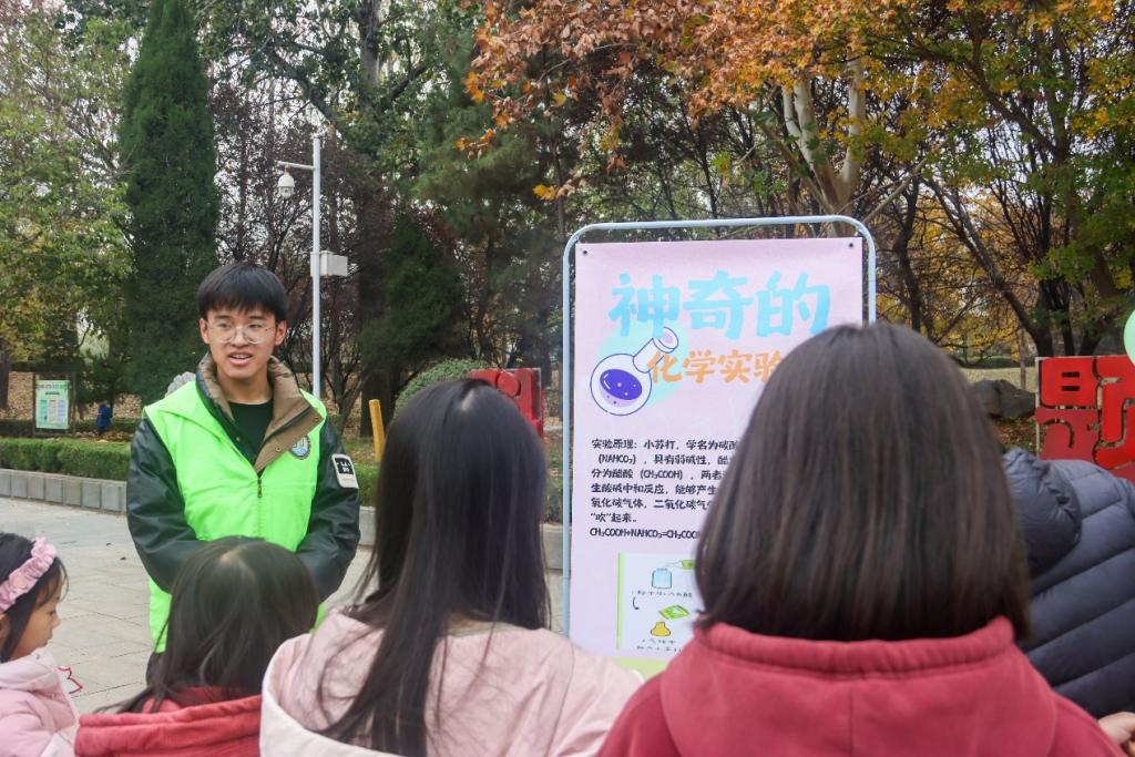 组织志愿者在曲阜市沂河公园组织开展了“化学+生活”科普课堂进社区志愿服务活动。